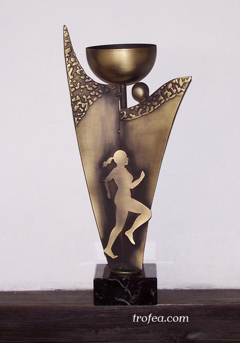 Statuetka sportowa metalowa jako nagroda w zawodach półmaratonu kobiet, galwanizowana na złoto