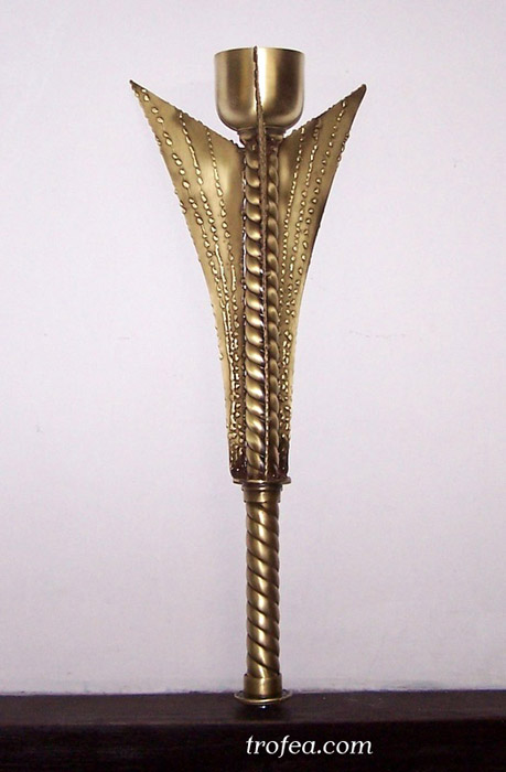 Statuetka sportowa w kształcie pochodni wykonana ze stali, galwanizowana na kolor złoty