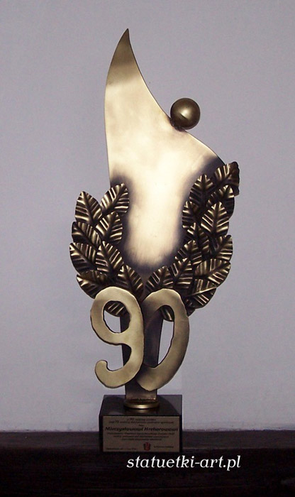 Statuetka z okazji 90-letniego jubileuszu Mieczysława Hrehorowa, wykonana ze stali i galwanizowana, na granitowym postumencie z okolicznościową tabliczką