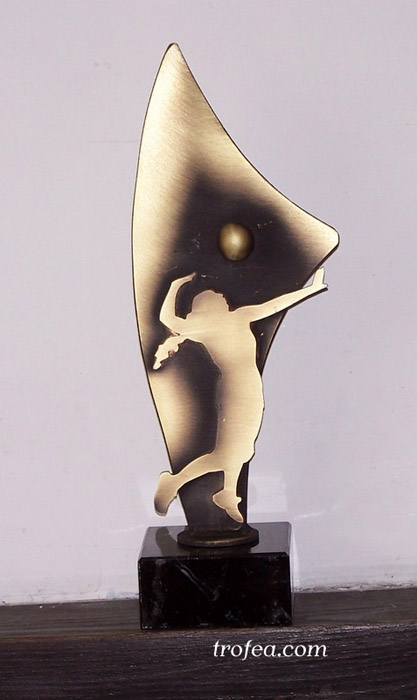 Statuetka metalowa sportowa (siatkówka) galwanizowana na kolor złoty na czarnym granitowym postumencie.