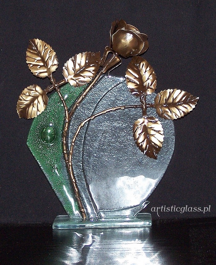 Statuetka Róża. Statuetka szkalna łączona z metalową różą.