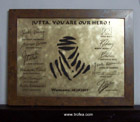 Na każdym trofeum można umieść dedykację. Wykonujemy napisy metodą grawertonową, grawerowanie mechaniczne oraz napisy wykonywane ręcznie.