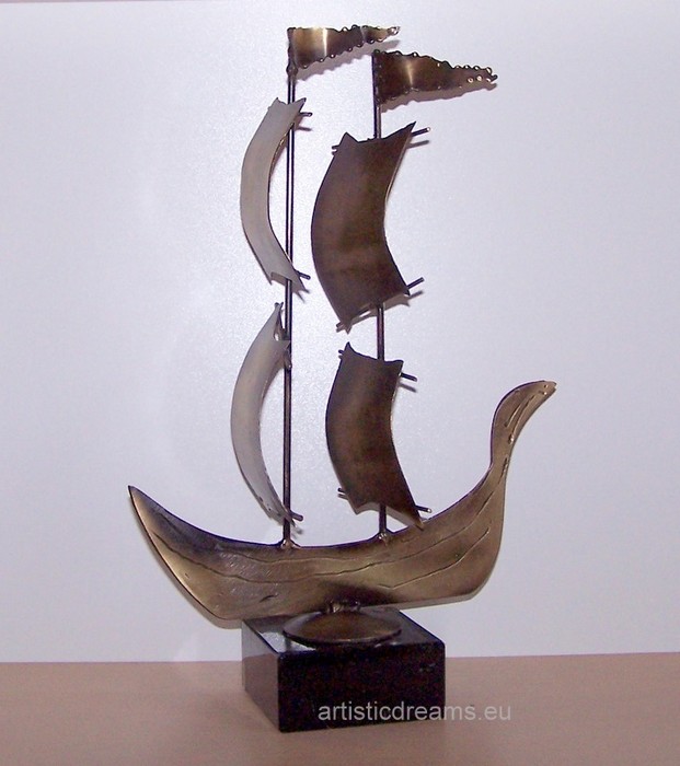 Statuetka wykonana jako nagroda regat żeglarskich. Statuetka wykonana jest z galwanizowanego metalu. Wysokość statuetki 35 cm.