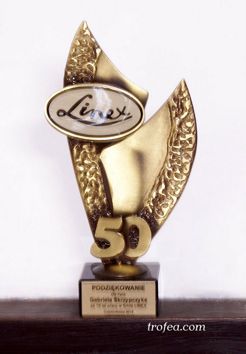 Statuetka firmowa dla pracowników Linex z okazji 50-lecia firmy, wykonana ze stali, galwanizowana