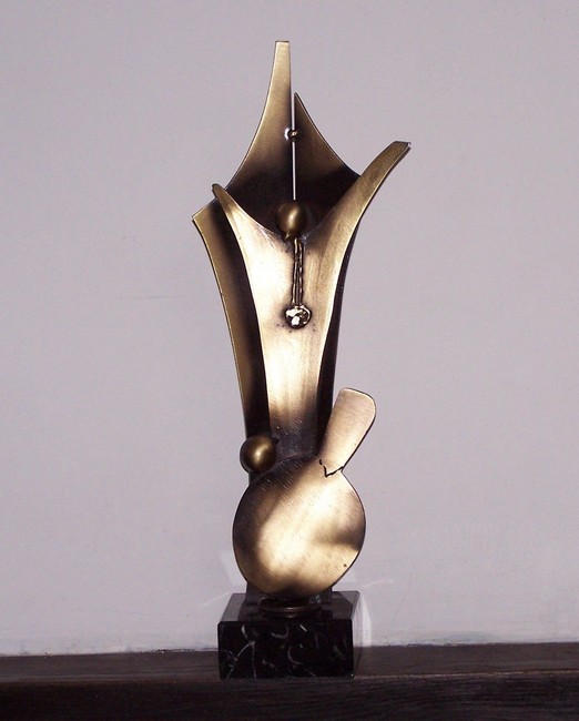 Statuetka sportowa dla Pawła G±siorskiego - zwycięzcy 50 turniejów tenisa stołowego, wykonana ze stali, galwanizowana