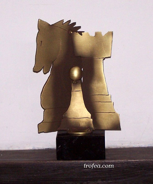 Statuetka sportowa jako nagroda w Turnieju Szachowym, metalowa, przypominająca figury szachowe