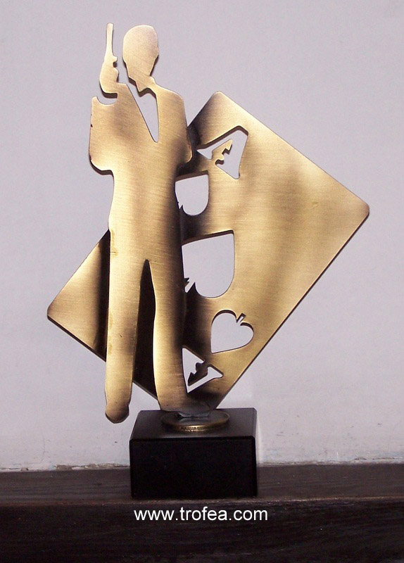Statuetka sportowa Karty AS. Galwanizowana na kolor złoty, z grawerowaną tabliczką na postumencie.