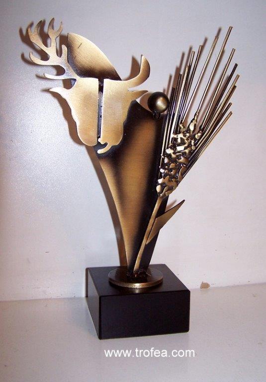 Statuetka Dożynki 2017 wykonana ze stali, galwanizowana na kolor złoty, z grawerowaną tabliczką.