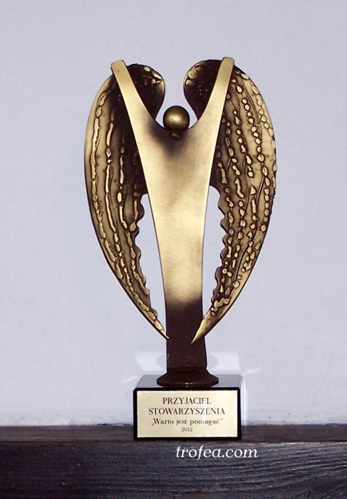 Statuetka Anioł Warto jest pomagać. Wykonana ze stali, galwanizowana, wysokość 25 cm.