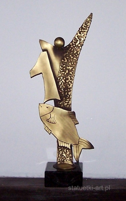 Statuetka Wędkarskie Zawody. Statuetka metalowa, galwanizowana, miejsce pierwsze. Wysokość 25 cm.