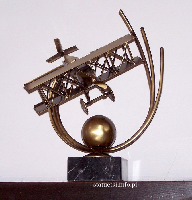 Statuetka dla Zwycięzcy Zawodów Lotniczych, statuetka metalowa, galwanizowana na "antyczne złoto" wysokość 27 cm
