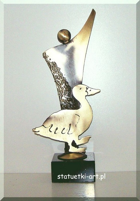 Nagroda kaczka. Statauetka wykonana ze stali, galwanizowana "nagroda kaczka", wysokość 30 cm, podstawa marmur 90x90x40 mm.