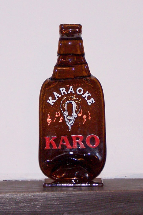 Butelka statuetka "Karaoke nagroda" stopiona w piecu. Statuetka dekoracyjna zdobiona ręcznie.