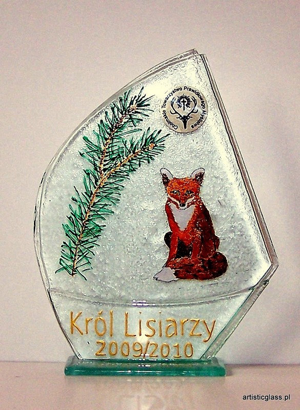 Statuetka - Król Lisiarzy. Statuetka szklana wykonana metodą stapiania szkła. Statuetka zdobiona ręcznie.