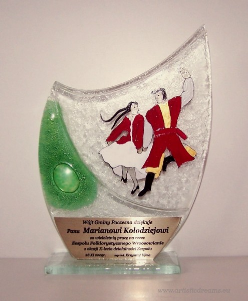 Statuetka - Podziękowanie za pomoc. Statuetka szklana wykonana metodą stapiania szkła. Statuetka zdobiona ręcznie.