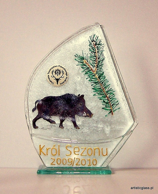 Statuetka - Król Sezonu. Statuetka szklana wykonana metodą stapiania szkła. Statuetka zdobiona ręcznie.