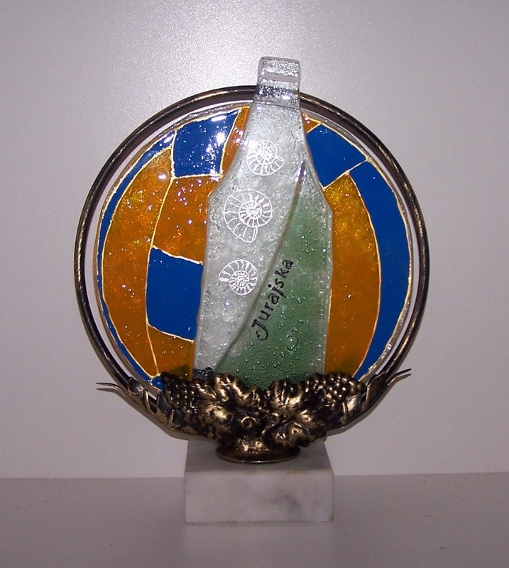 Statuetka jako trofeum w turnieju piłki siatkowej. Statuetka szkło-metal.