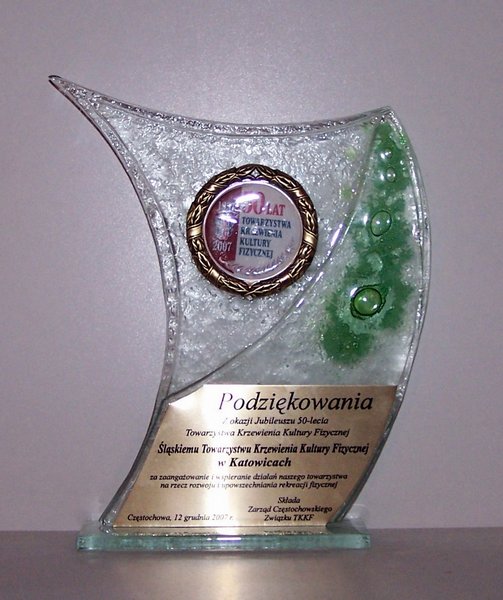 Statuetka - 50-lecie TKKF. Statuetka wykonana metodą fusingu.