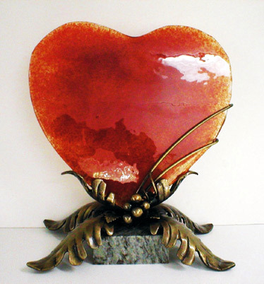 Serce za serce - statuetka szklana podziękowanie. Statuetka umocowana na metalowej oprawie. Statuetka o wysokosci 27 cm.
