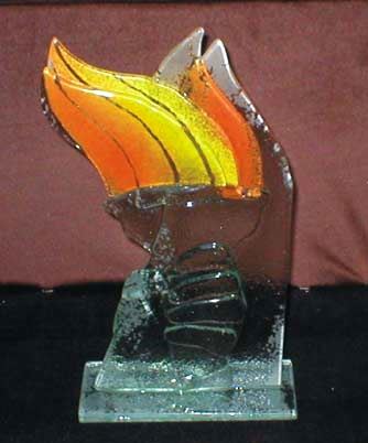 Statuetka - Znicz. Szkalna statuetka z użyciem podsypki koloru. Statuetka wykonana technologia fusingu.