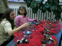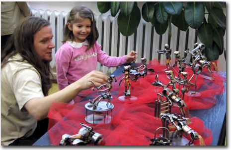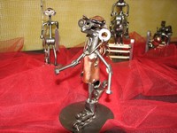 Naukowe definicje opisują szkło jako bezpostaciową materię, która najbardziej przypomina niezwykle lepką, zakrzepniętą ciecz. Autor prac na wernisażu wystawy przyznał, że ten materiał jest ciągle pełen życia, choć nie posiada szkieletu w postaci struktury kryształu. Żyje i zmienia swój kształt, barwę, załamanie światła pod dyktando plastyka i w podmuchach rozgrzanego do kilkuset stopni Celsjusza powietrza. Nie zawsze jest posłuszny i przewidywalny. Bywa kruchy i kapryśny. Dzięki temu każda praca nosi znamiona niepowtarzalności. Na wystawie zaprezentowano czystą formę szklanej rzeźby powstałej ze spajania okruchów aż do uzyskania wizualnych form aniołów, drzew i różnorakich abstrakcyjnych bytów wypełniających wyobraźnię twórcy. Tę czystą formułę szklanej plastyki prezentował syn pana Zbigniewa. Sam mistrz poszedł o krok dalej, wplatając w szklaną bryłę metalowy kontur i zdobiąc tak powstały przedmiot specyficzną powłoka lakierniczą, z której temperatura czyni kolorowe przestrzenne formy, niejako zrośnięte z rdzennym budulcem. Technika ta pozwala uzupełnić przesłanie bryły treścią, wykrojoną skrawkiem metalowej blachy uwięzionej pomiędzy szklanymi płytami. Swoista szklana pułapka epatująca postaciami wyjętymi z prac Picasa czy Salvadora Dali. Abstrakcyjne formuły przeplecione użytkowym rękodziełem. Użytkowym i prezentacyjnym, bo jak inaczej zaszufladkować pokaźną statuetkę z herbem Blachowni, którą twórca wręczył Przewodniczącemu Rady Miasta Jackowi Kościelnemu jako dar mający zdobić magistrackie pomieszczenia. Światło połyskuje na załamanych wysoką temperaturą szklanych krawędziach rzeźb i prowokuje zwiedzających wystawę do pytań. O technologię, materiały, rynkową wartość przedmiotów. Ale te, są jak dzieci, których ojciec nigdy nie zdradzi i z którymi z bólem się rozstaje. Dzieci, nie jedyne. Plastyczne pasje Zbigniewa Pstrusińskiego wiążą się nieodłącznie z jego inżynierskim wykształceniem i zamiłowaniem, jak sam przyznaje, do ślusarskich pasji. Te zaś ujawniają się nieśmiało w szklanych statuetkach by rozkwitnąć ferią odważnych pomysłów w metaloplastycznych miniaturach. Zapełniają one drugą połowę wystawowej przestrzeni, obrazując dokonania autora, który z metalowych fragmentów przedmiotów codziennego użytku lub napotkanych na złomowisku odpadach tworzy miniinstalacje plastyczne. Znajdziemy wśród nich kunsztownie zamodelowane bryły samochodów, w których stara świeca zapłonowa jest elementem spajającym formę i nadającym niepowtarzalny urok i atmosferę oscylującą od abstrakcji do nadrealizmu. Stojący obok jeździec budzący skojarzenia z postacią szalonego rycerza z La Manczy, konie, motocykle czy zrobotyzowane ludzkie postacie są kolejnym dowodem nieskrępowanej fantazji ich twórcy oraz jego artystycznego i rzemieślniczego kunsztu. Wystawione prace budują swoisty klimat, który można posmakować odwiedzając salę Miejskiego Domu Kultury. Wystawa czynna będzie do końca maja. Z pełną, komercyjną ofertą prac będących przedmiotem sprzedaży można zapoznać się odwiedzając internetową witrynę autora wystawy, który jest zarazem właścicielem przedsiębiorstwa zajmującego się metaloplastyką i sprzedażą statuetek i trofeów. Zdjęcia z wernisażu wystawy prezentuje portal www.blachownia.com Krzysztof Parkitny źródło: http://www.kkta.euronet.net.pl/?p=827#more-827 Polecamy: statuetki |